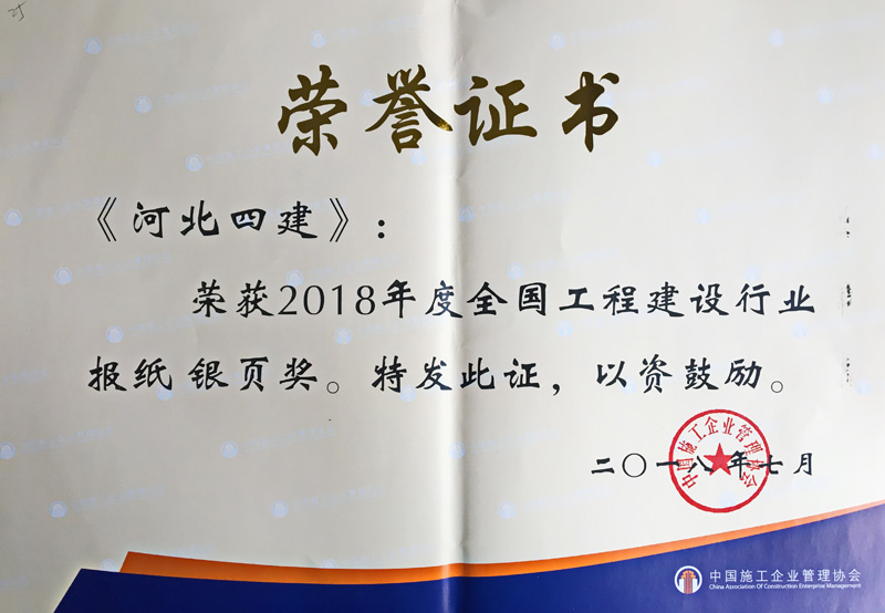 全国工程建设行业报纸银页奖
